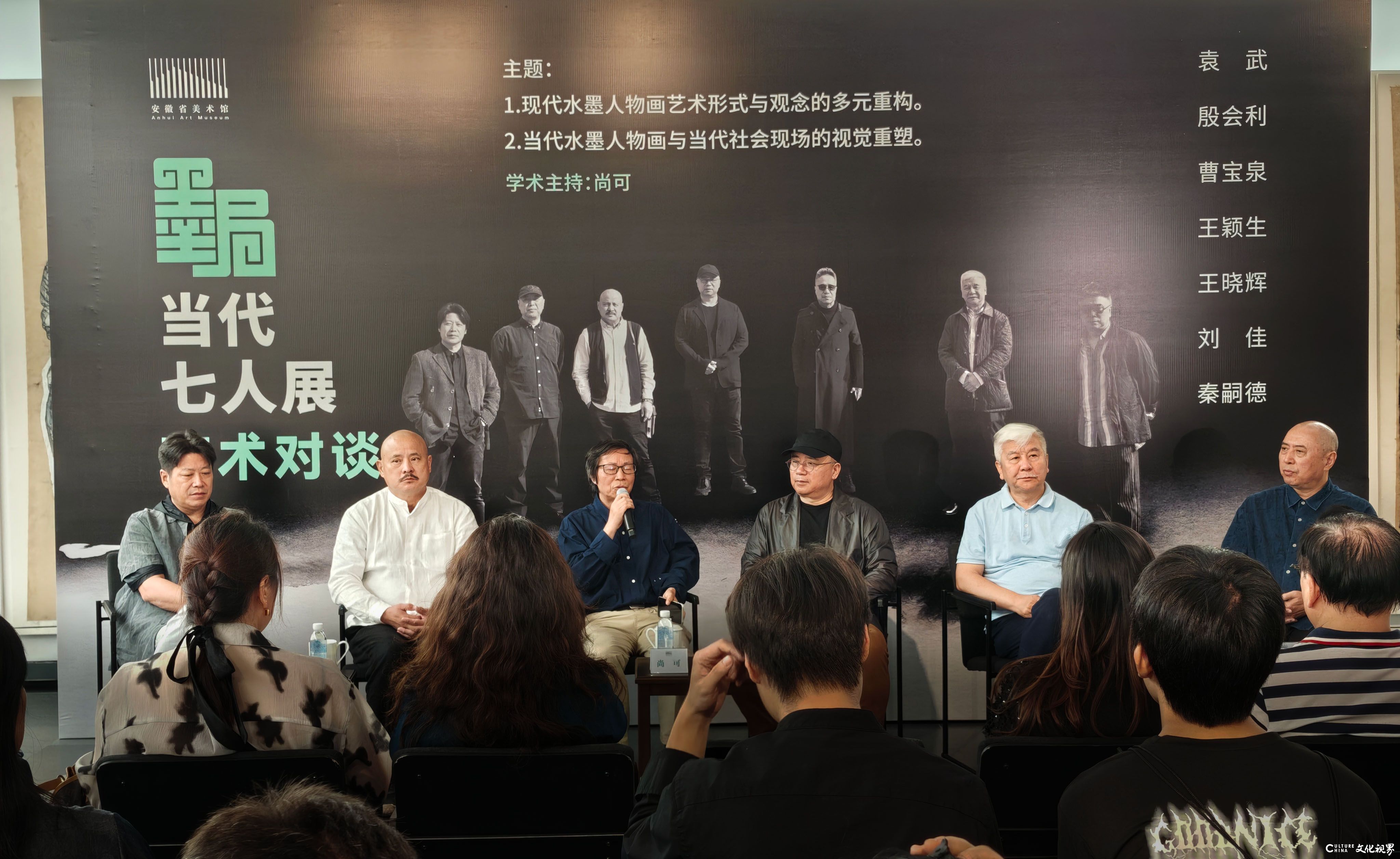 开幕式后,“墨局——当代七人展”艺术对谈活动在安徽省美术馆举行,一场关于水墨人物画当代转型的深度对话热烈展开。对谈活动由中国国家画院研究员、安徽师范大学美术学院院长尚可主持,聚焦“现代水墨人物画艺术形式与观念的多元重构”与“当代水墨人物画与当代社会现场的视觉重塑”两大议题,参展艺术家殷会利、曹宝泉、王颖生、王晓辉、秦嗣德与本地艺术家代表展开思想碰撞,以实践经验与理论思辨勾勒出水墨艺术的当代可能性。